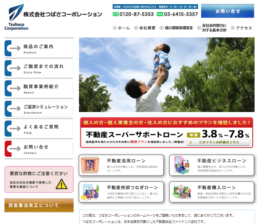 「つばさコーポレーション」では、不動産担保ローンや住宅購入ローンを全国対応で取り扱っています。