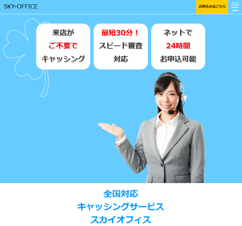 スカイオフィスは、来店不要で申し込みから融資まで行える消費者金融サービスです。