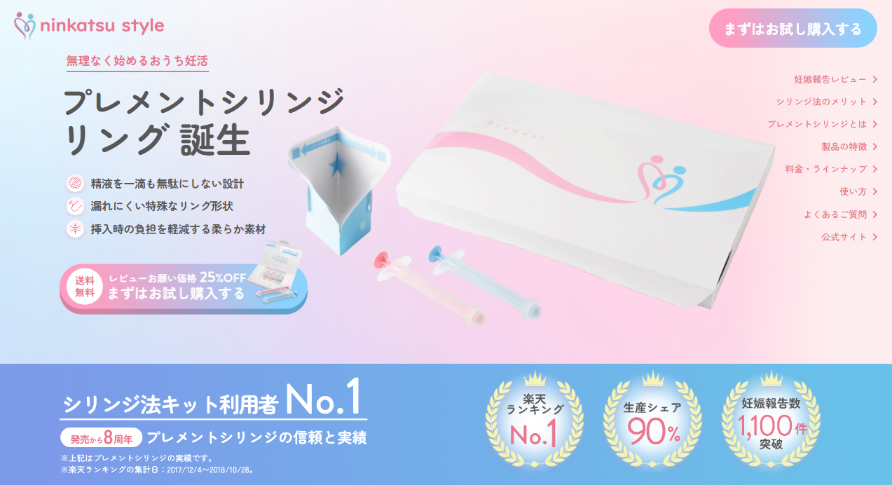 「プレメントシリンジリング」は、自宅で行える新しいシリンジ法キットです。