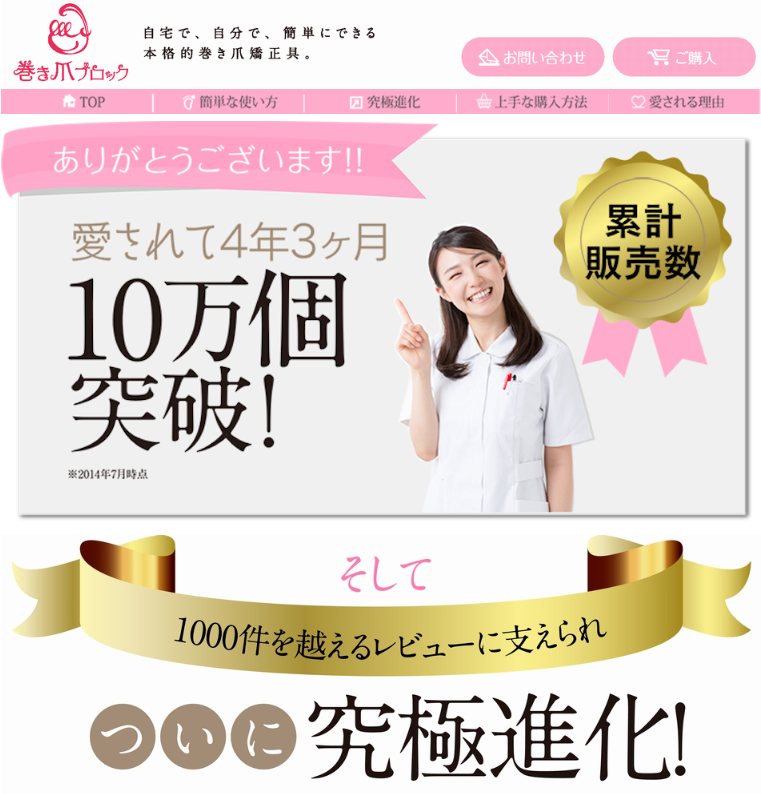 公式サイトはこちら 巻き爪ブロックについて 【巻き爪ブロック】は、自社工場で製造された本格巻き爪補正器具。 専門家が器具を選ぶ方法にならい、お客様の爪の形・大きさ・厚さ・硬さに合わせてジャストフィットするよう設計されています。 確かな製造技術で作られた信頼性の高い商品は、老若男女を問わず幅広い方にご利用いただけます。自宅で手軽に巻き爪補正を始めたい方におすすめ。 詳細は公式サイトでご確認ください。 商品名 巻き爪ブロック カテゴリ 健康・美容