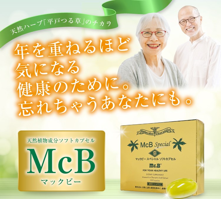 公式サイトはこちら マックビー(McB)スペシャルについて マックビースペシャルは、長崎県平戸市で有機栽培された天然ハーブ「平戸つる草(モモルディカチャランティア)」の濃縮エキスをを使用した栄養機能食品シリーズです。 一枚一枚手摘みで収穫し、農薬不使用の安全な素材を国内のHACCP認証工場で丁寧に製造。 ご年配の方からお子様まで安心してお召し上がりいただけます。 古くからインカの人々にも親しまれてきた植物の力を、毎日の健康習慣に取り入れてみませんか。 国内生産の確かな品質で、あなたとご家族の健やかな日々をサポートします。 商品名 マックビー(McB) カテゴリ 健康・美容