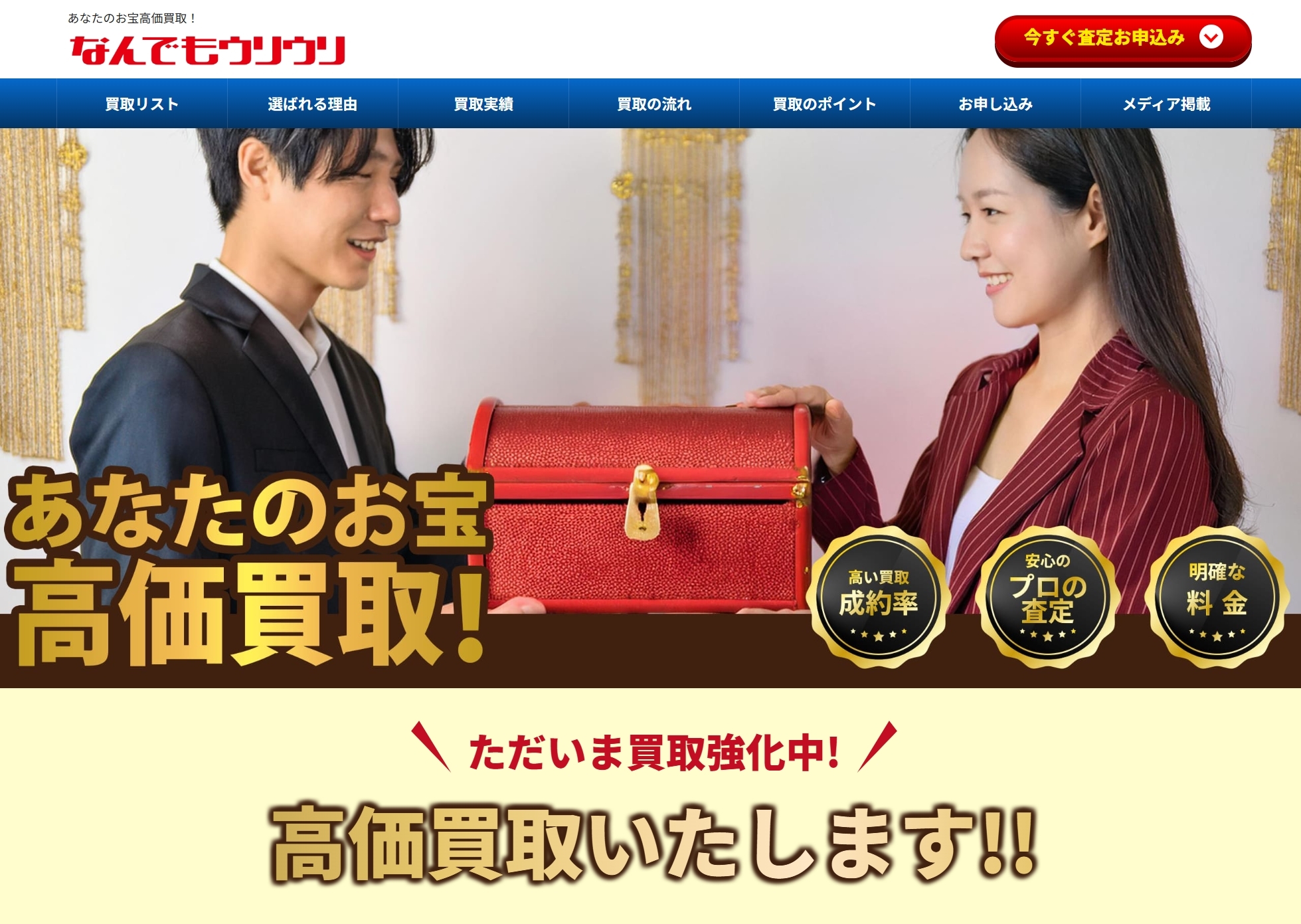 公式サイトはこちら なんでもウリウリについて 「なんでもウリウリ」は、ご家庭の不用品を手軽に売れる宅配買取サービスです。 段ボールに入るものなら幅広く対応しており、送料・手数料・査定料はすべて無料。専用の宅配キットも無料で提供されるため、初めての方でも安心して利用できます。 査定は専門の鑑定士が担当し、結果が出てから最短3日以内に入金。 さらに自宅の箱を使って発送すると買取金額が10%アップする特典も。年代を問わず利用されており、不要になったモノを手軽に現金化したい方におすすめのサービスです。 商品名 なんでもウリウリ カテゴリ 趣味