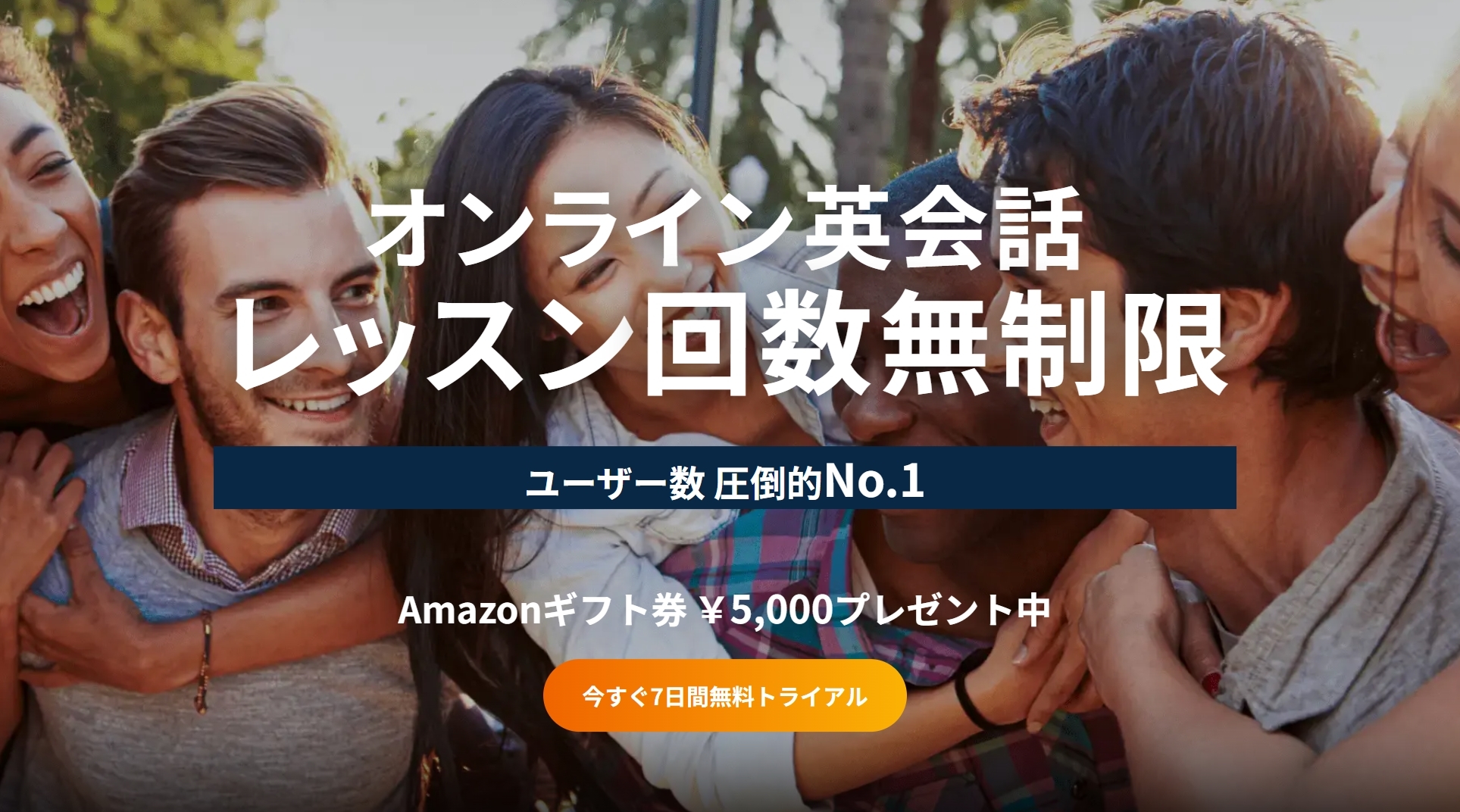 さらに今なら7日間の無料体験キャンペーン、Amazonギフト券 ¥5,000プレゼントを実施中。