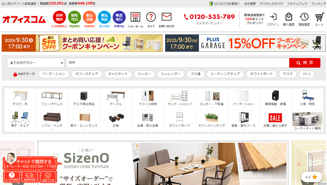 オフィスコムは、20万点以上の商品を揃えるオフィス家具通販サイトです。
