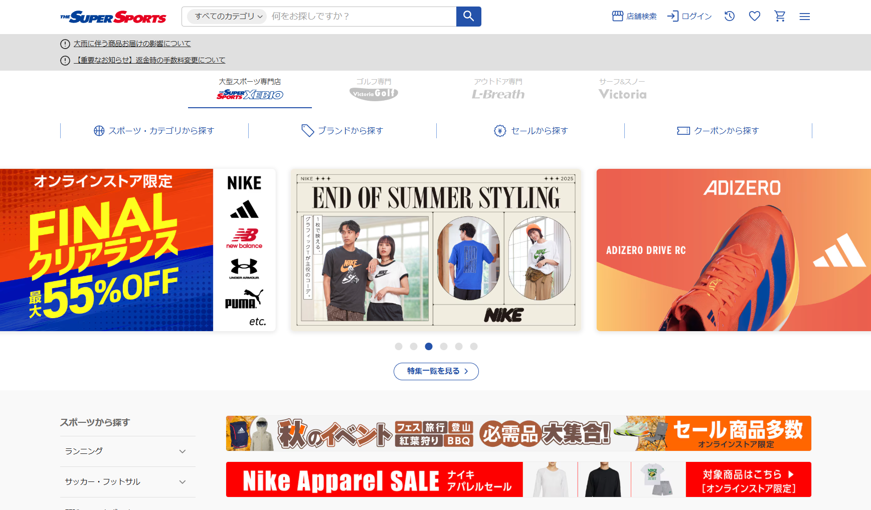 スポーツ用品を探すなら「スーパースポーツゼビオ公式通販サイト」がおすすめです。