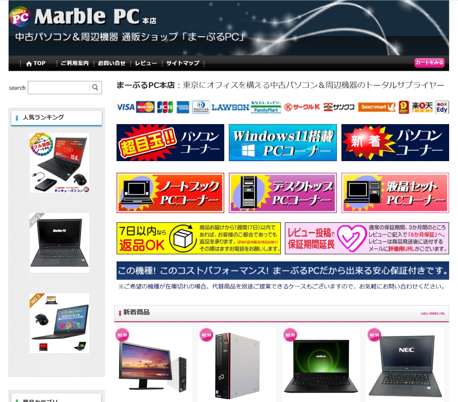 中古パソコン専門店「まーぶるPC」は、ノートPC・デスクトップ・タブレット・モニター・プロジェクター・周辺機器などを中心に、USED良品を豊富に取り扱うショップです。