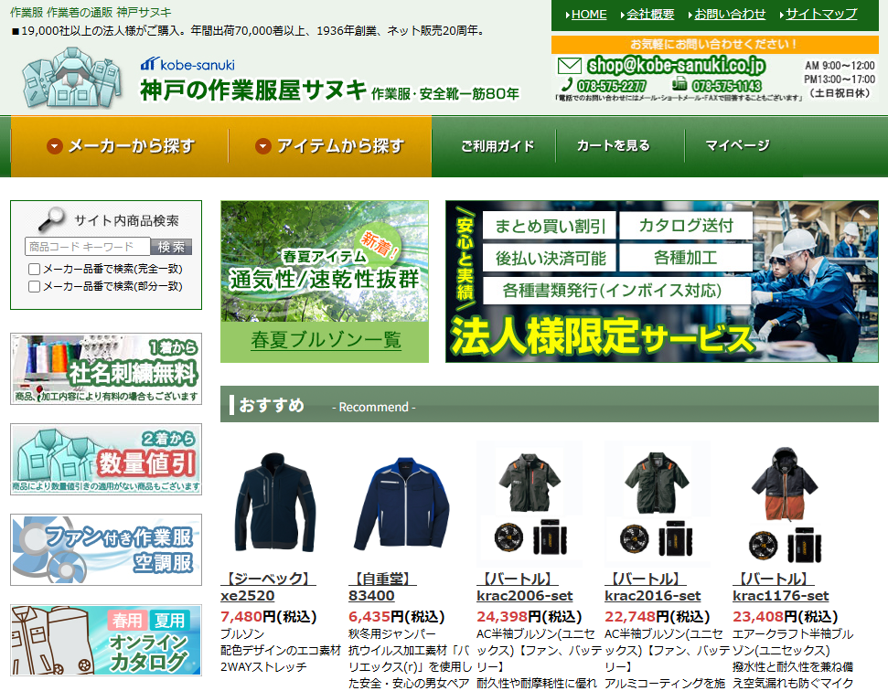 神戸・兵庫区に拠点を構える老舗専門店 神戸サヌキ は、作業服・安全靴・防寒服・事務服・安全保護具など、現場で働く方々に必要なウエアと装備を幅広く取り揃える専門通販店です。