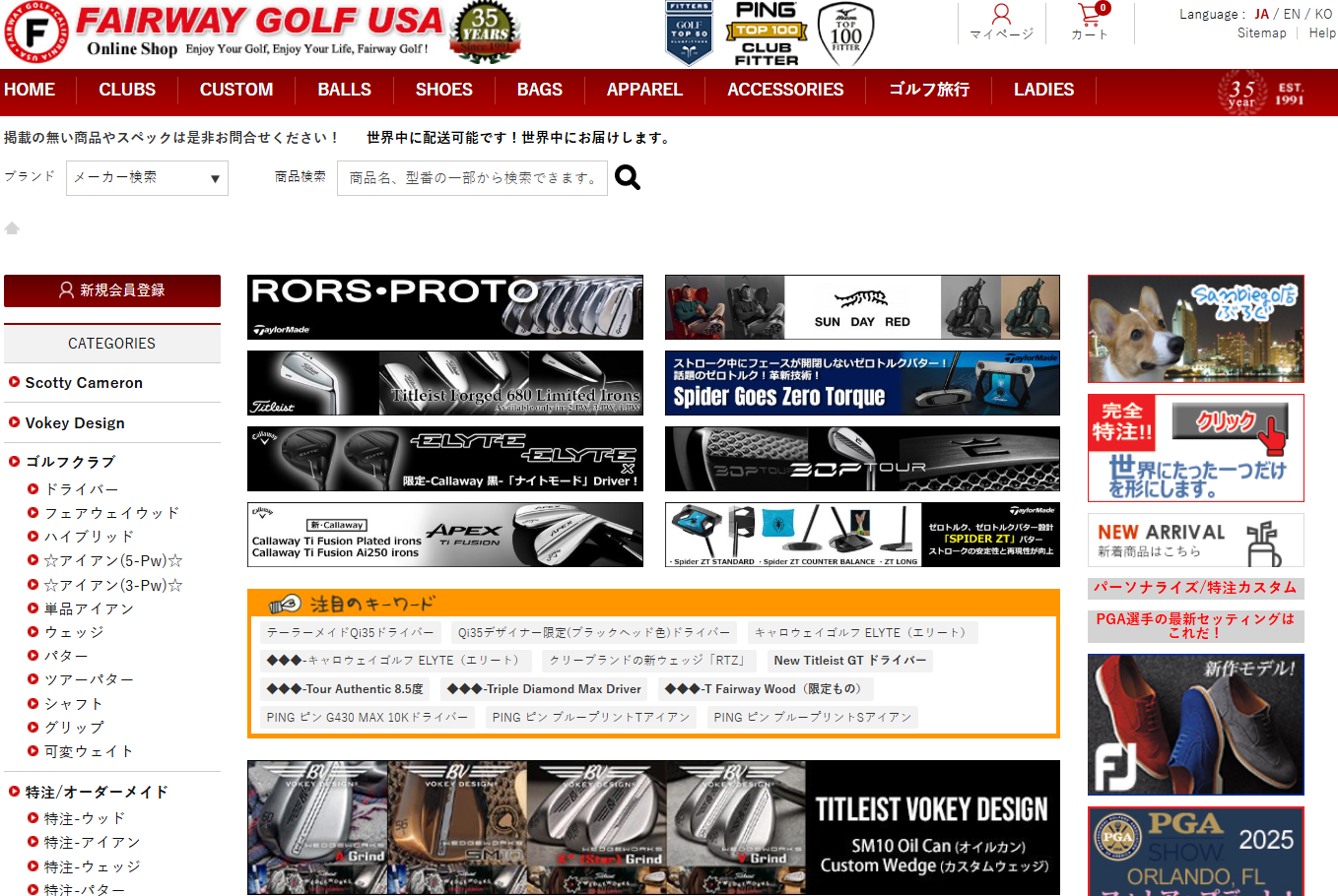 フェアウェイゴルフは、1991年にカリフォルニア州サンディエゴにオープンしたゴルフ専門店です。USA限定モデルや、日本未発売のレアアイテム、さらに日本より安く手に入るゴルフクラブを直送でお届け!
