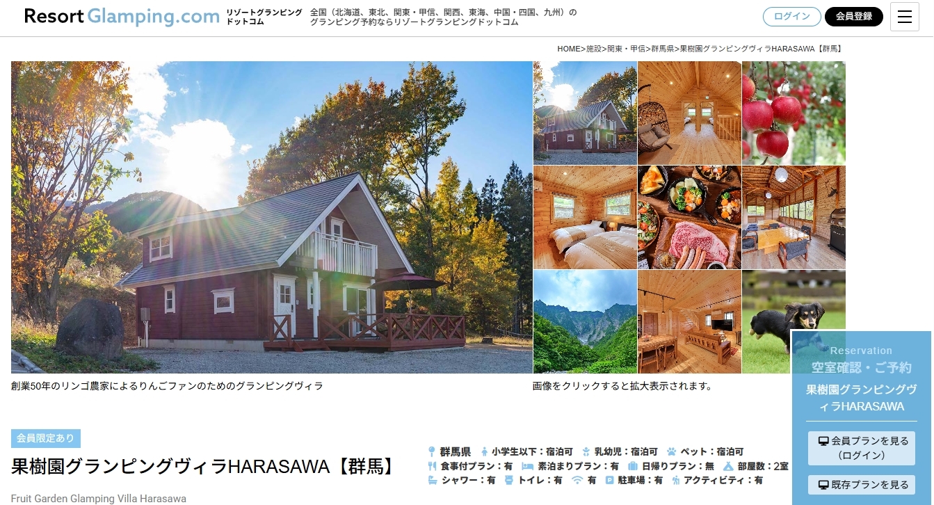 商品名 | 果樹園グランピングヴィラHARASAWA(リゾートグランピングドットコム) |