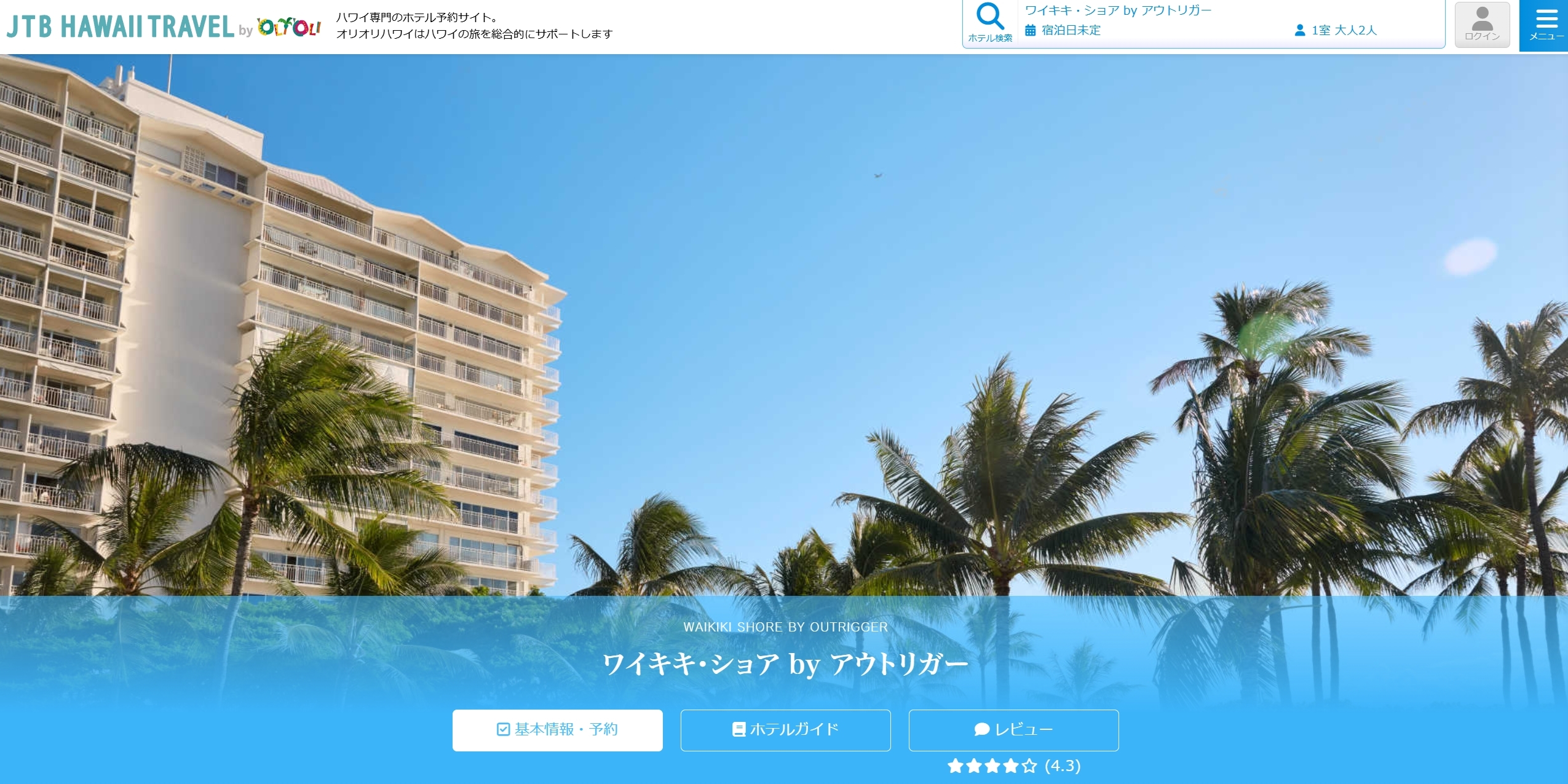 「ワイキキ・ショア by アウトリガー」は、ワイキキビーチの目の前に位置するリゾート・コンドミニアム。ハワイ最大級の旅行会社【JTBハワイ】が運営する公式予約サイトから、日本語で安心してご予約いただけます。